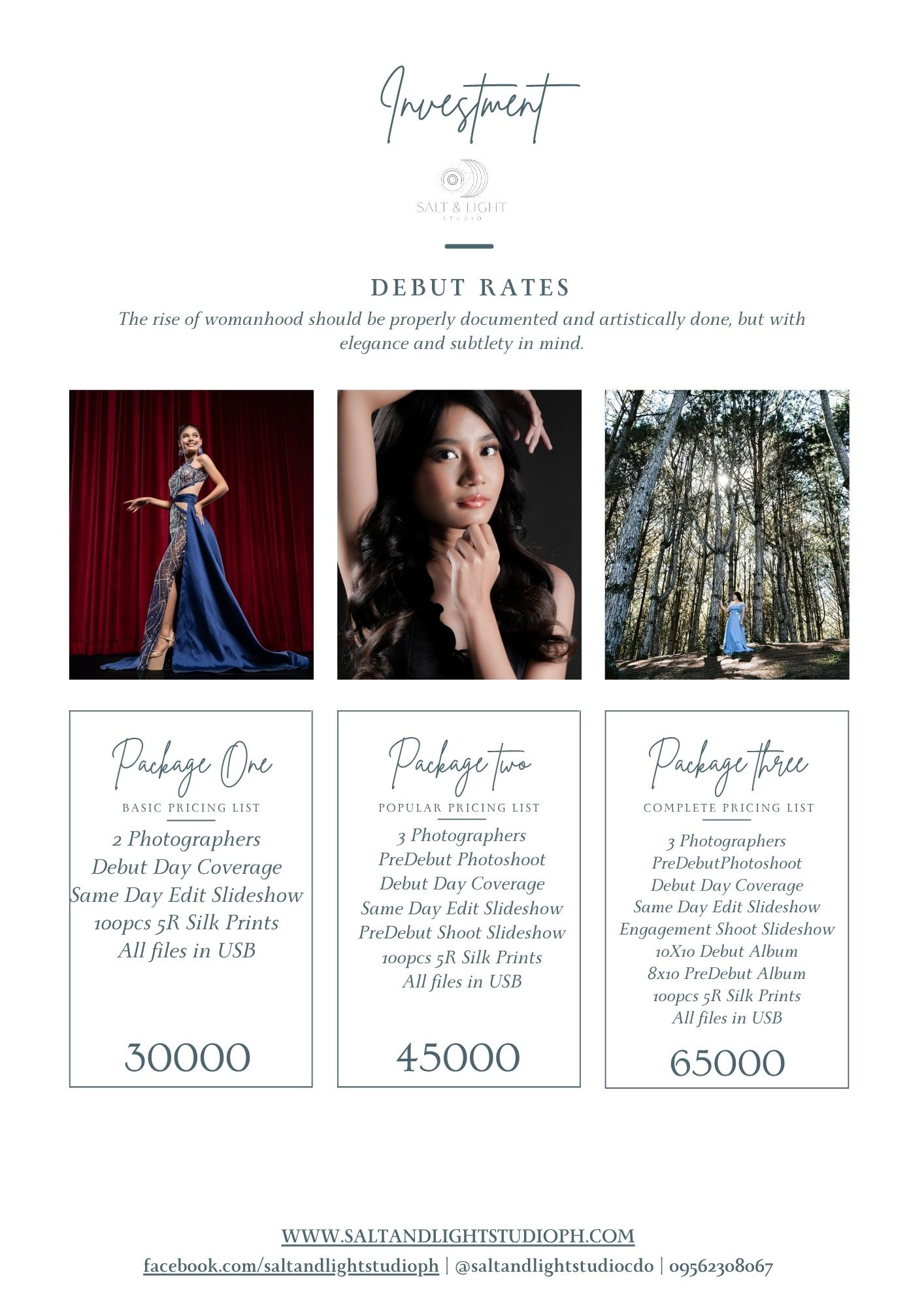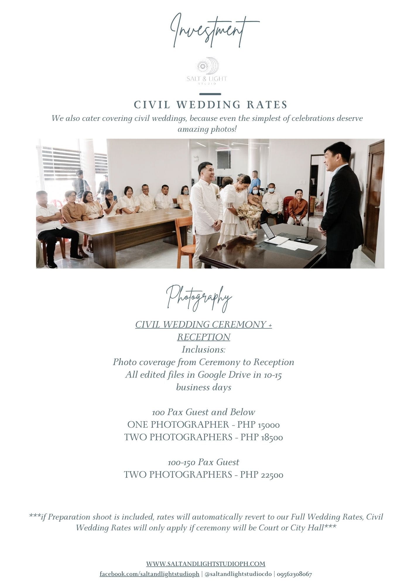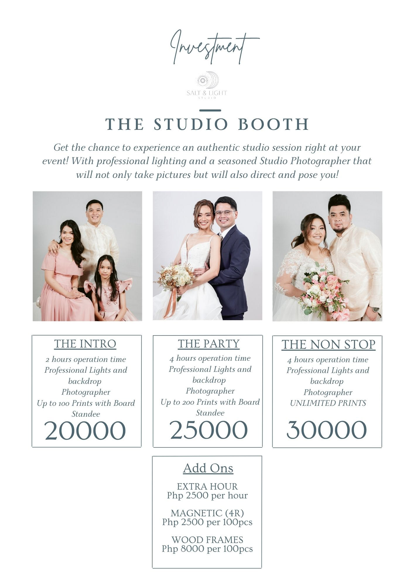 Here are our Wedding Service Sheet as well as our Studio Service Sheet, if you find something that you are interested in, send us a message!